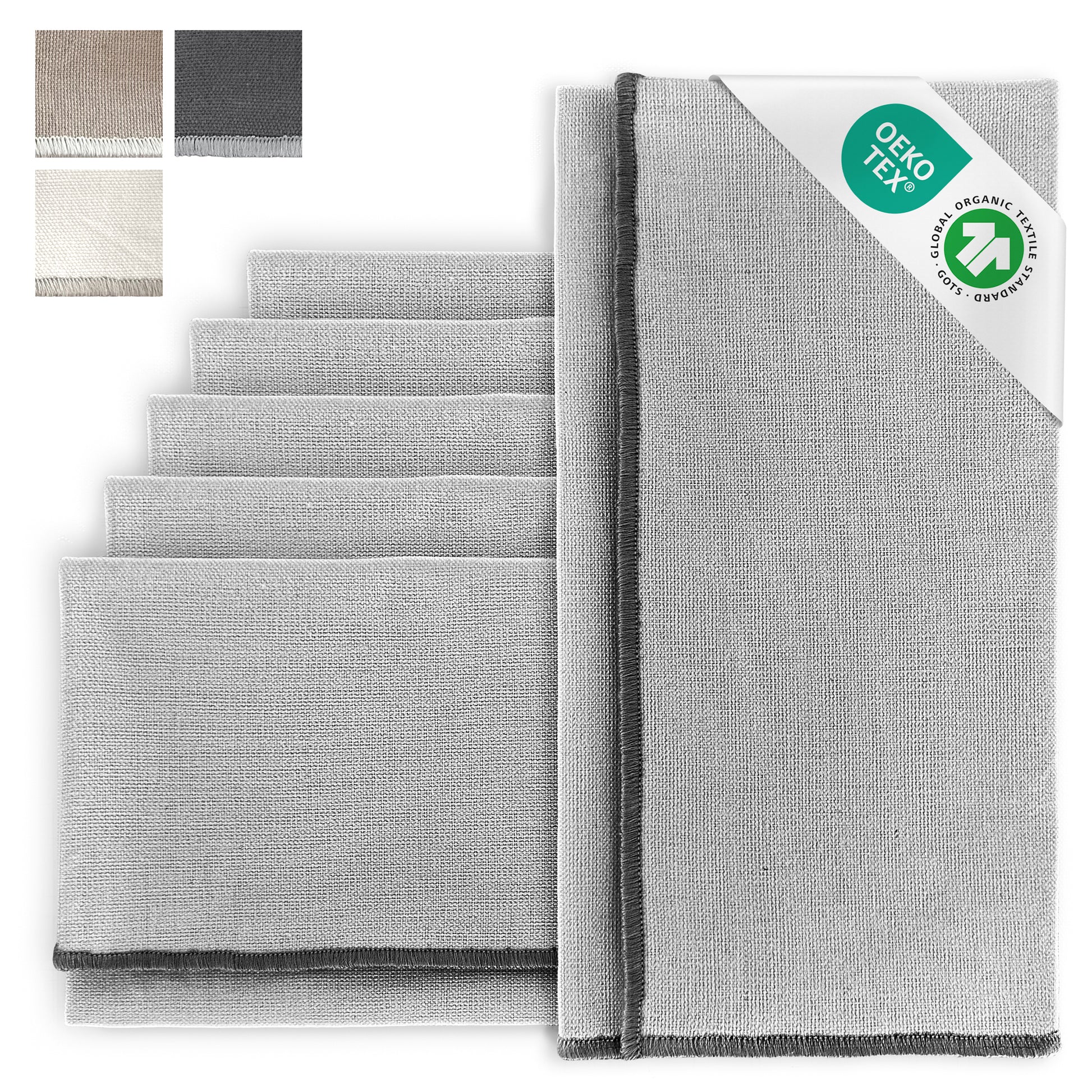 Stoffservietten aus 100% Bio-Baumwolle mit edler Ziernaht - 6er Set - 45 x 45 cm